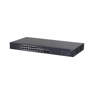 Коммутатор, Dahua, DH-PFS4218-16ET-240, 19-дюймовый стоечный, 16 портов 10/100M + 2 комбо порта SFP, Управляемый (L2), PoE, Корпус металл, 1U