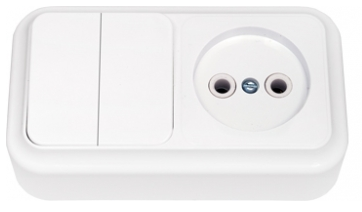 Блок 2 выключателя + розетка открытой установки, серия ПРАЛЕСКА, 2В-РЦ-523
