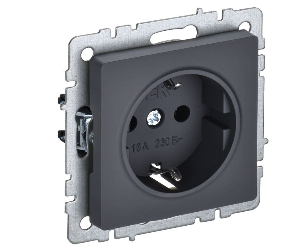 BRITE Розетка 1-местная с заземлением с защитными шторками 16А РС14-1-0-БрГ графит IEK