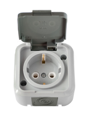 Розетка 1-местная открытой установки с заземляющим контактом IP54, серия ПРАЛЕСКА АКВА, РА16-297(03)