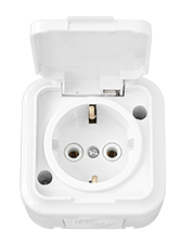 Розетка 1-местная открытой установки с заземляющим контактом IP54, серия ПРАЛЕСКА АКВА, РА16-297