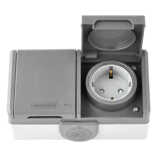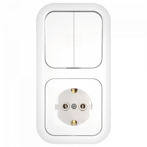 Розетка 2-местная открытой установки с заземляющим контактом пылеструезашищенная РА16-0156(03)