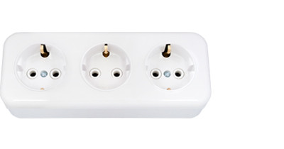 Розетка 3-местная открытой установки с заземляющим контактом, РА16-243