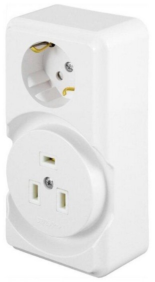 Штепсельная розетка для открытой установки с заземляющим контактом комбинированная.