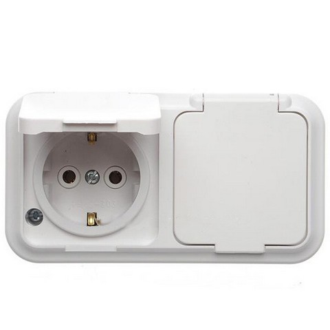 Розетка РА16-303 открытой установки 2-местная с заземлением брызгозащищенная, ПРАЛЕСКА АКВА IP54