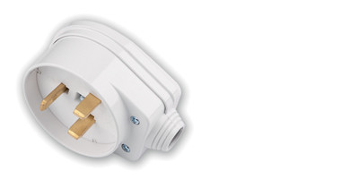 Вилка штепсельная с заземляющим контактом и боковым подводом провода.