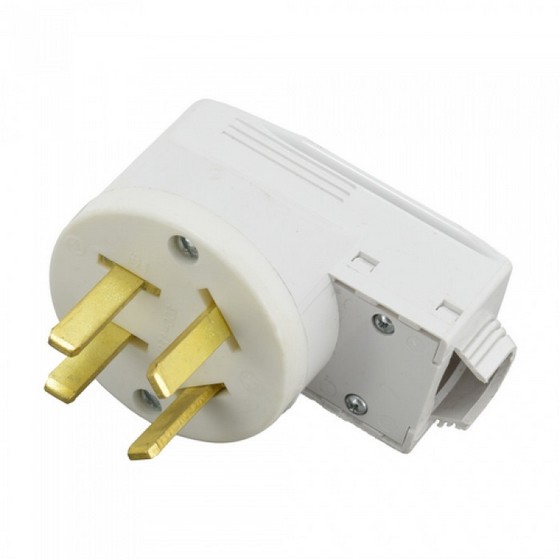 Вилка штепсельная с заземляющим контактом и боковым подводом провода.