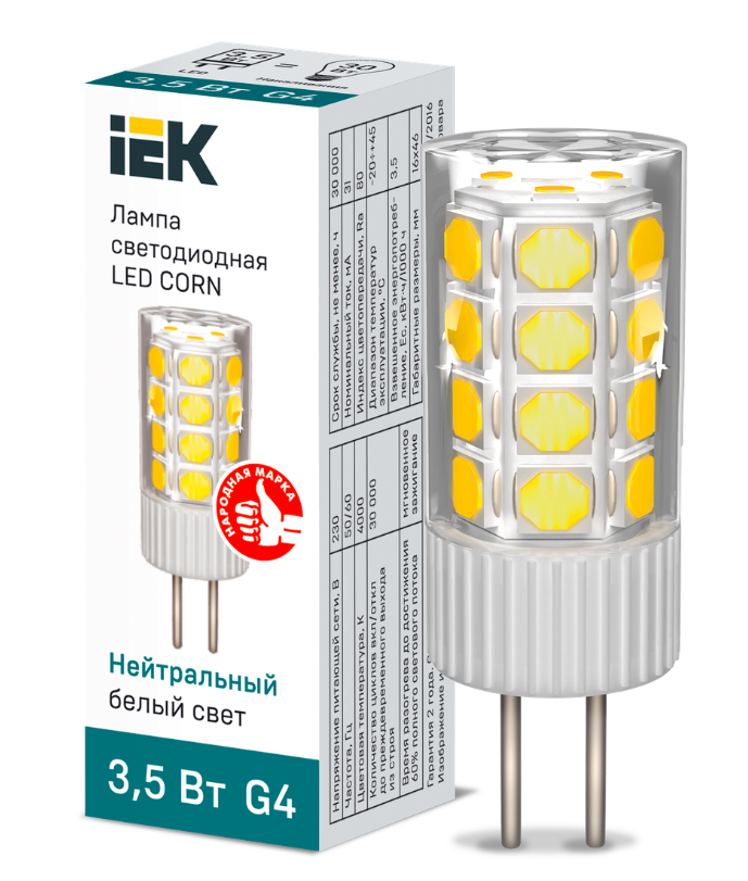 Лампа светодиодная CORN капсула 3,5Вт 230В 4000К керамика G4 IEK