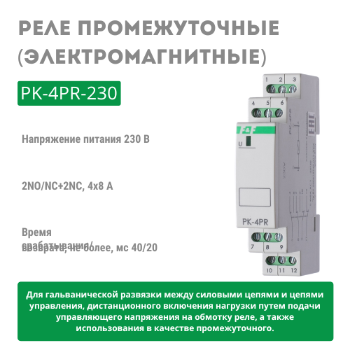 Напряжение питания 230В AC. Контакт 2NO/NC+2NC, 4x8 А.
