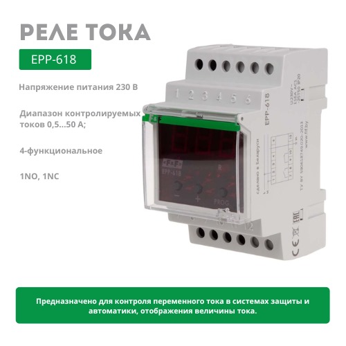 Реле тока EPP-618 предназначено для контроля переменного тока в системах защиты и автоматики, отображения величины тока.