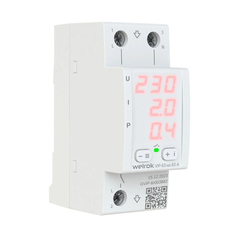 Welrok VIP-63 Red Многофункциональное реле контролем напряжения, тока и мощности, 63А