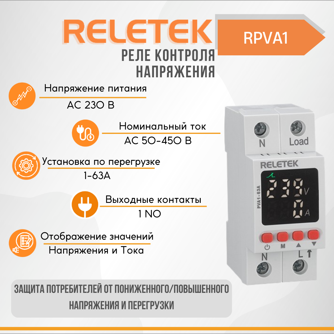 Реле контроля напряжения RPVA1 (LCD, 80-400VAC, 63A, 1NO)