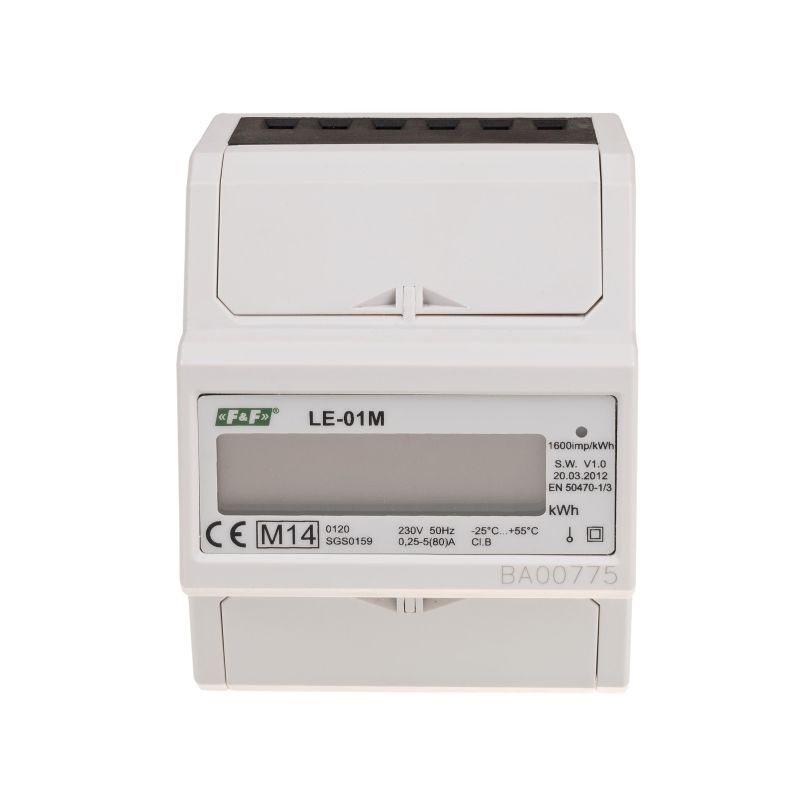 LE-01M – статический (электронный) поверяемый счетчик электроэнергии однофазного переменного тока, подключаемый непосредственно к системе. Предназначен для считывания показаний и регистрации показаний потребленной электроэнергии с возможностью дистанционного считывания по проводному интерфейсу RS-485.