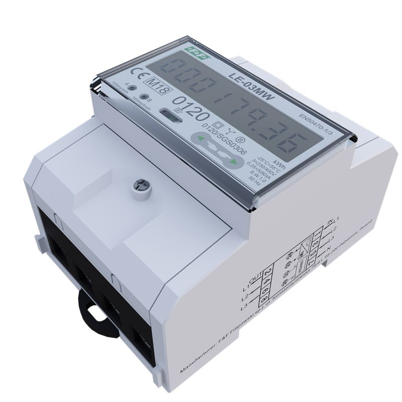 LE-03MW — это электронный двухканальный счётчик электроэнергии для трёхфазной электроэнергии, соответствующий Директиве MID, предназначенный для измерения в системе прямого измерения.