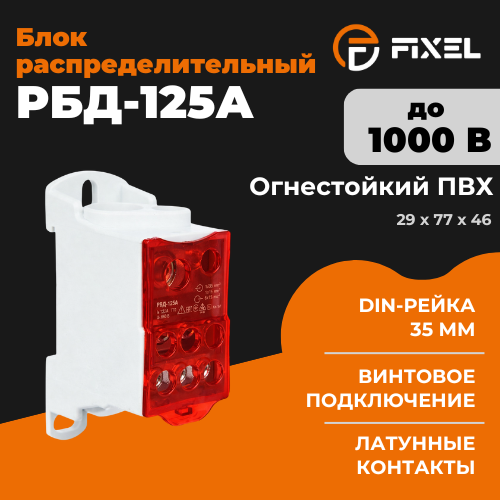 Блок распределительный РБД-125А на DIN-рейку красный FIXEL