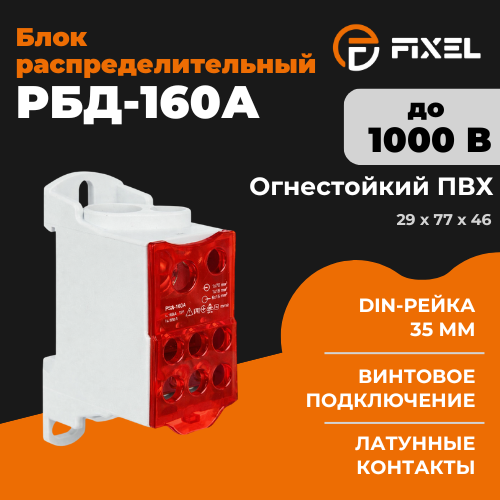 Блок распределительный РБД-160А на DIN-рейку красный FIXEL