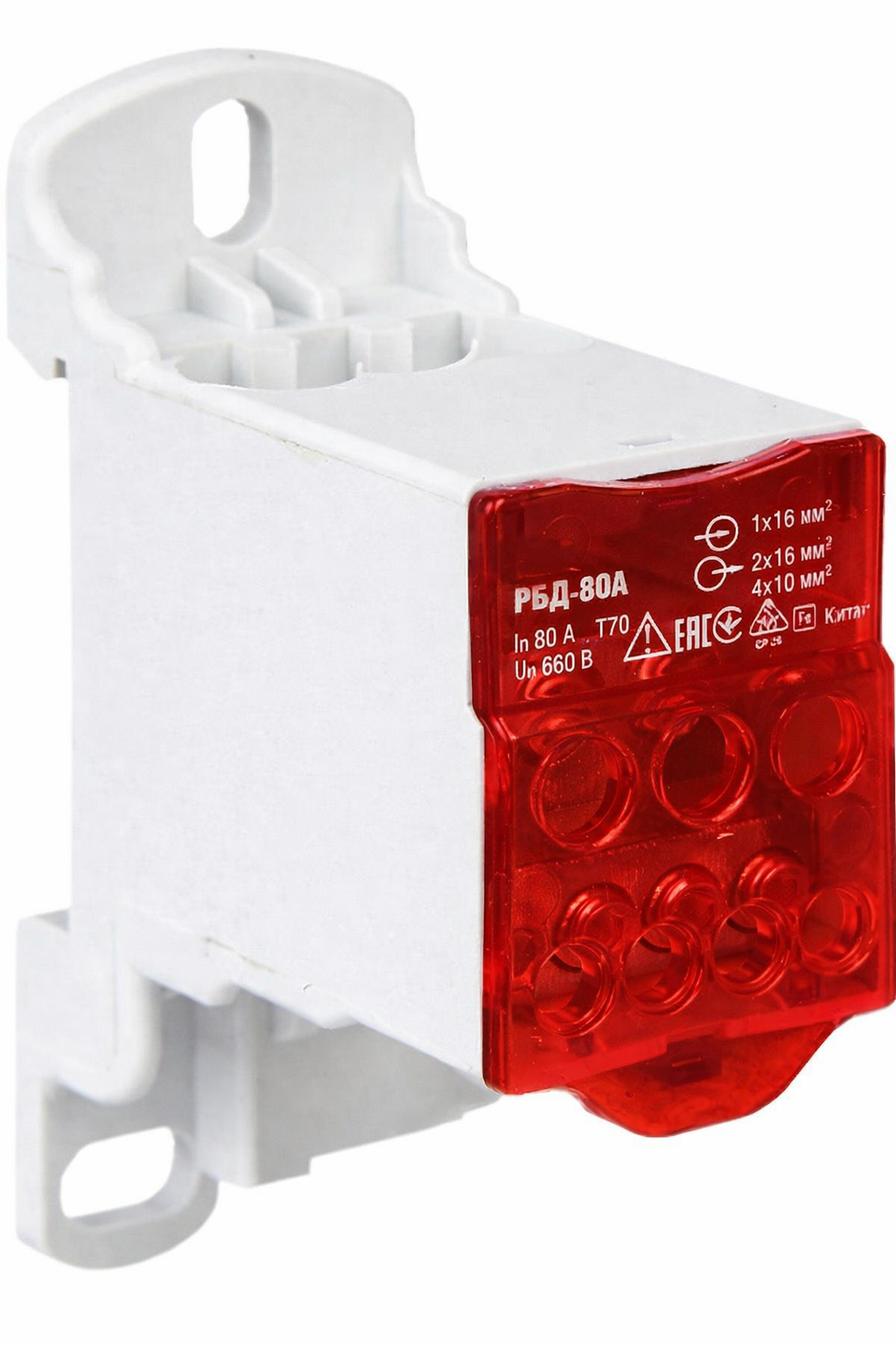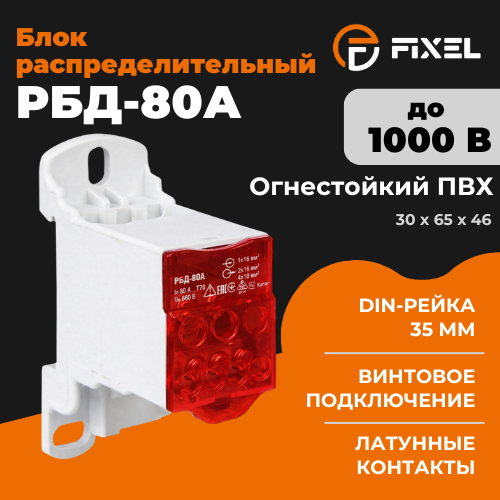 Блок распределительный РБД-80А на DIN-рейку красный FIXEL