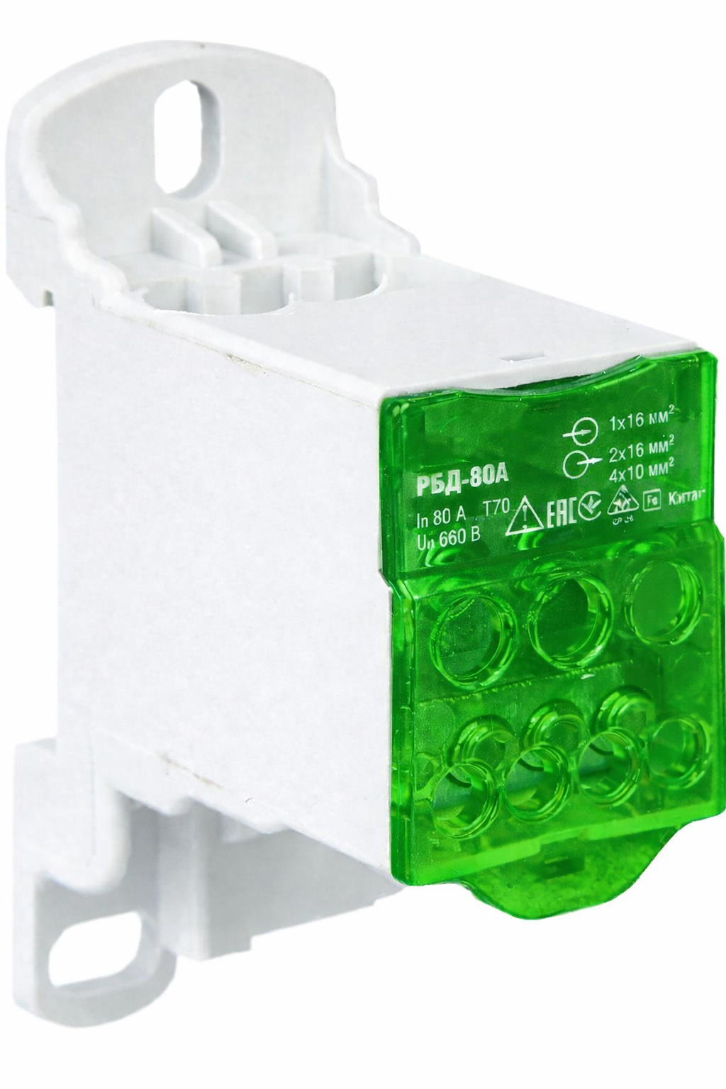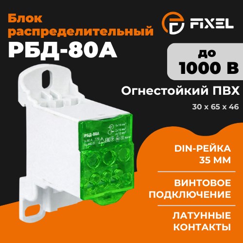 Блок распределительный РБД-80А на DIN-рейку зеленый FIXEL
