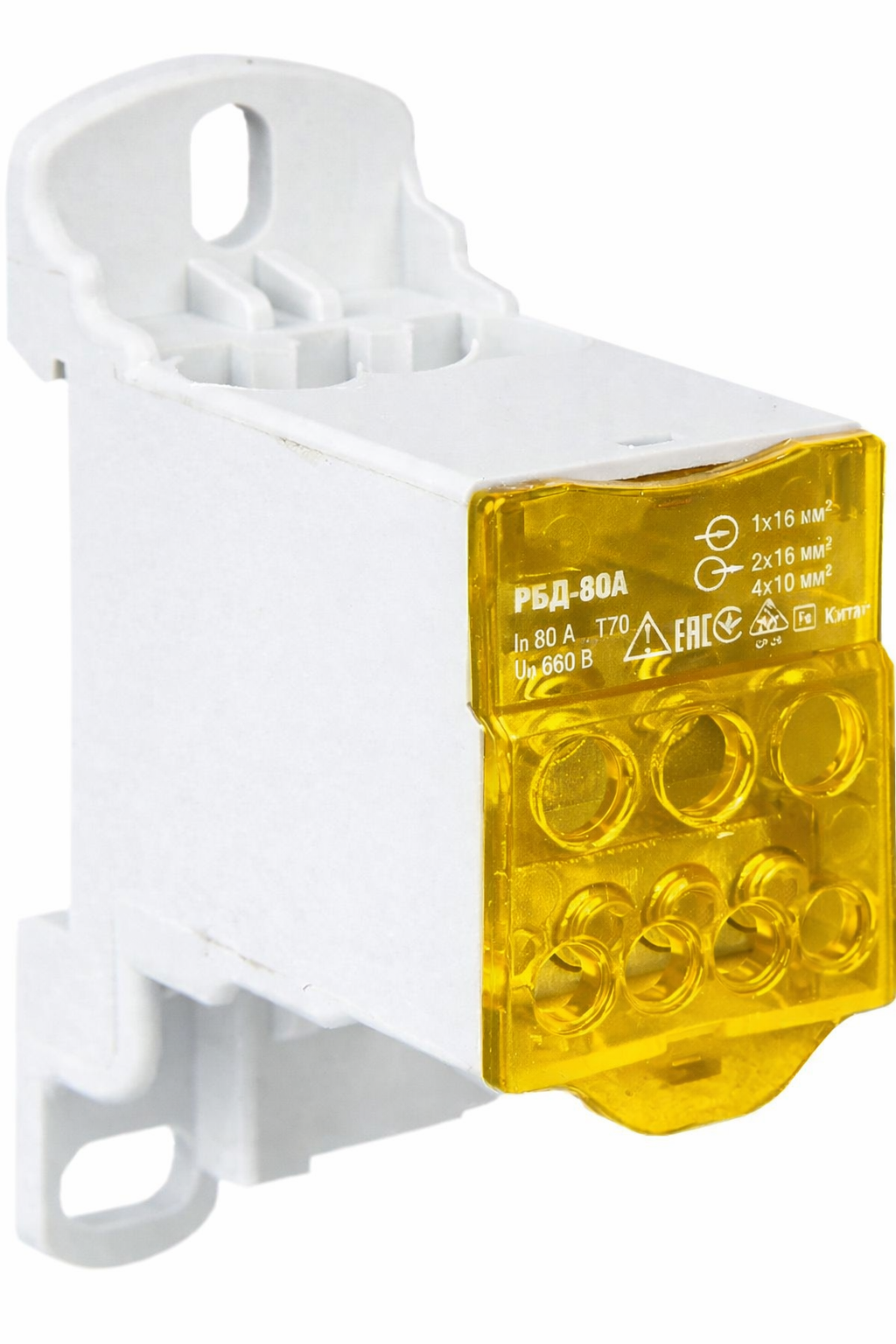 Блок распределительный РБД-80А на DIN-рейку желтый FIXEL