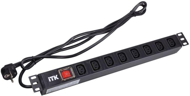 ITK PDU 8 розеток C13 с LED выкл,1U, шнур 2м вилка нем.ст