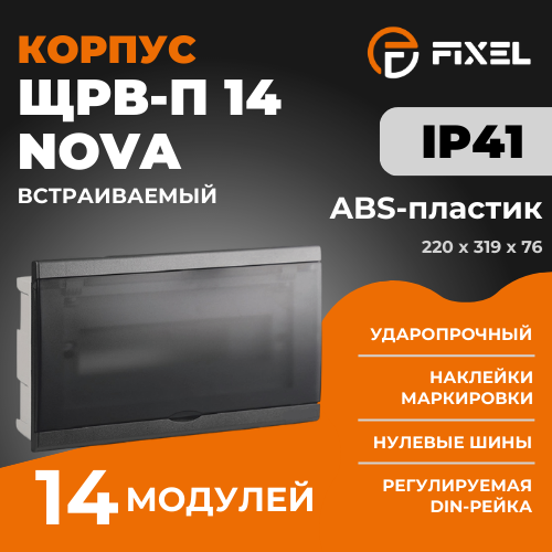 ЩРВ-П 14 модулей NOVA встраиваемый пластик черный IP41 (220x319x76) FIXEL