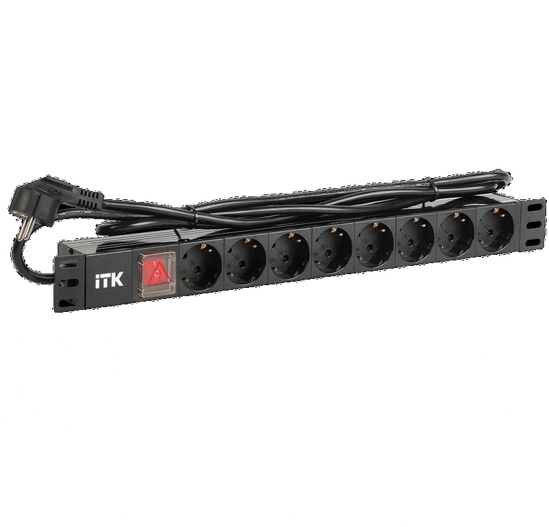 Горизонтальные 19" PDU от ITK прекрасно справляются с задачей по электроснабжению сетевого оборудования в шкафах и стойках, а также с требованием защиты от токов короткого замыкания и перенапряжения. Изготавливаются блоки розеток из высококачественных термостойких материалов и пластмасс, оснащаются выключателем со светоиндикацией и соответствуют российским и международным стандартам качества. Горизонтальные PDU соответствуют стандарту 19" (482,6 мм) и устанавливаются с помощью кронштейнов на 19" профиль, при этом положение кронштейнов можно менять.