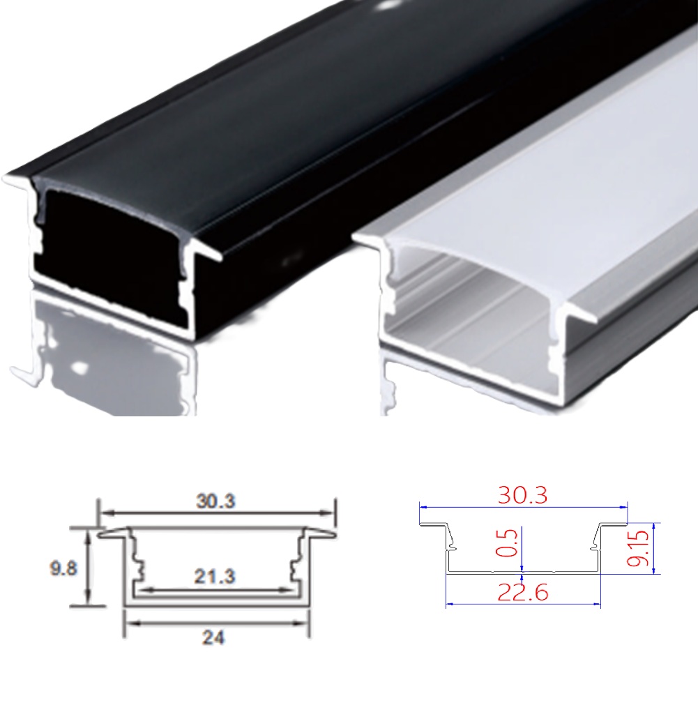 Профиль алюминиевый черный BH-30х10 встраиваемый прямоугольный опал (2м) LEDAR