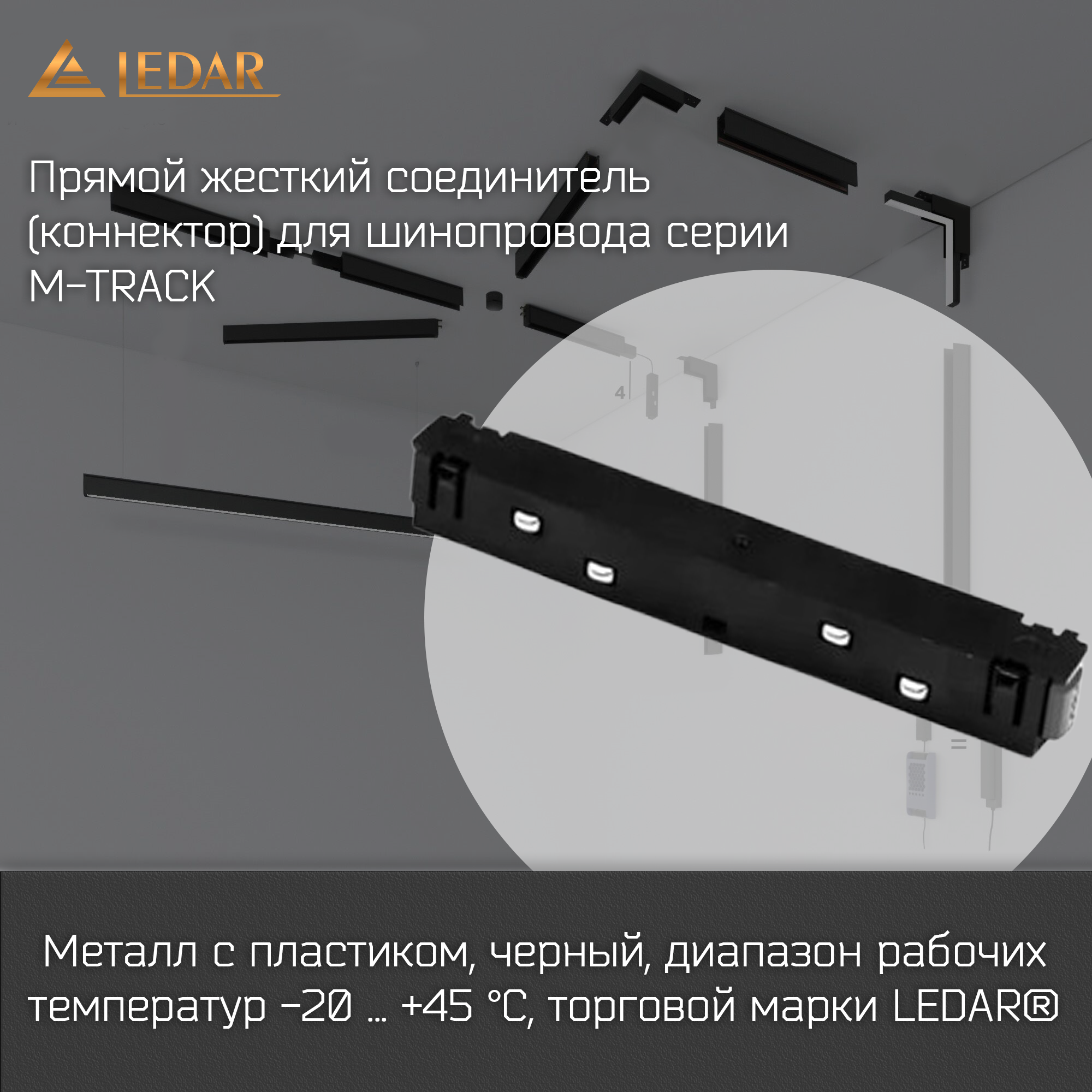 Прямой жесткий соединитель (коннектор) для шинопровода серии M-TRACK, металл с пластиком, черный, диапазон рабочих температур -20 ... +45 °C, торговой марки LEDAR®