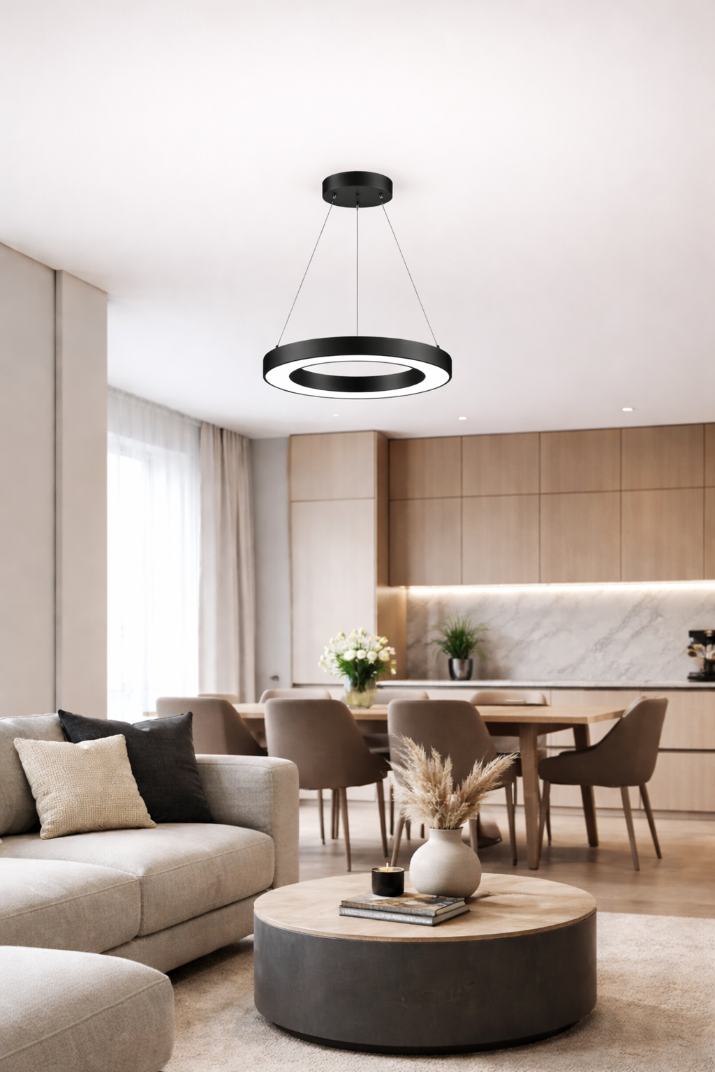 Светильник подвесной серии XO O-тип полый 36W 6500K опал черный 500х100Х70мм LEDAR