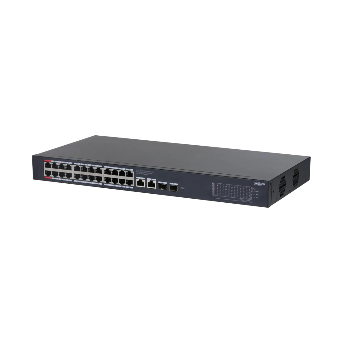 Коммутатор, Dahua, DH-CS4228-24GT-375, Управляемый L2, 24 RJ-45 10/100/1000 Мбит/с (PoE). Порт 25-26: 2 RJ-45 10/100/1000 Мбит/с (восходящий канал). Порт 27-28: 2 SFP 1000 Мбит/с (восходящий канал)