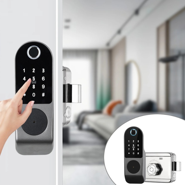 Современный умный замок с биометрическим и кодовым доступом, предназначенный для защиты домов и офисов, при этом остаётся простым в использовании и управлении.