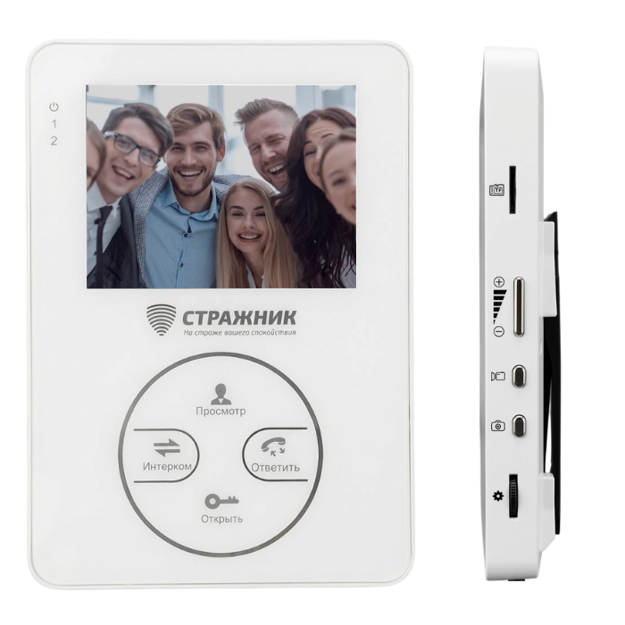 Монитор видеодомофона Стражник STR-4Rec— отдельный компактный блок, включающий в себя микрофон для общения с посетителями, динамик, кнопки управления и цветной дисплей, с помощью которого можно просматривать пространство по ту сторону двери в режиме реального времени. Современный монитор видеодомофона обеспечивает диалог с посетителем, просмотр видеокамер и дистанционное управление замком двери, а также сохранение фото каждого посетителя!