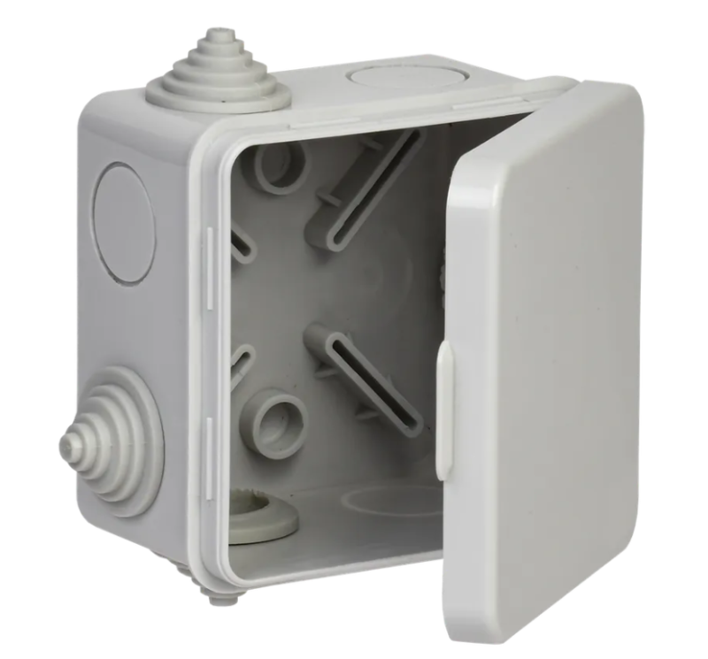 Коробка распаячная КМ для открытой проводки с откидной крышкой 65х65х50мм IP54 4 гермоввода (7035) GENERICA