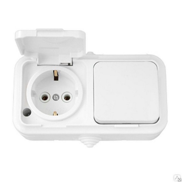 Блок 1 выключатель + розетка с заземляющим контактом открытой установки IP54, серия ПРАЛЕСКА АКВА, В-РЦ-657