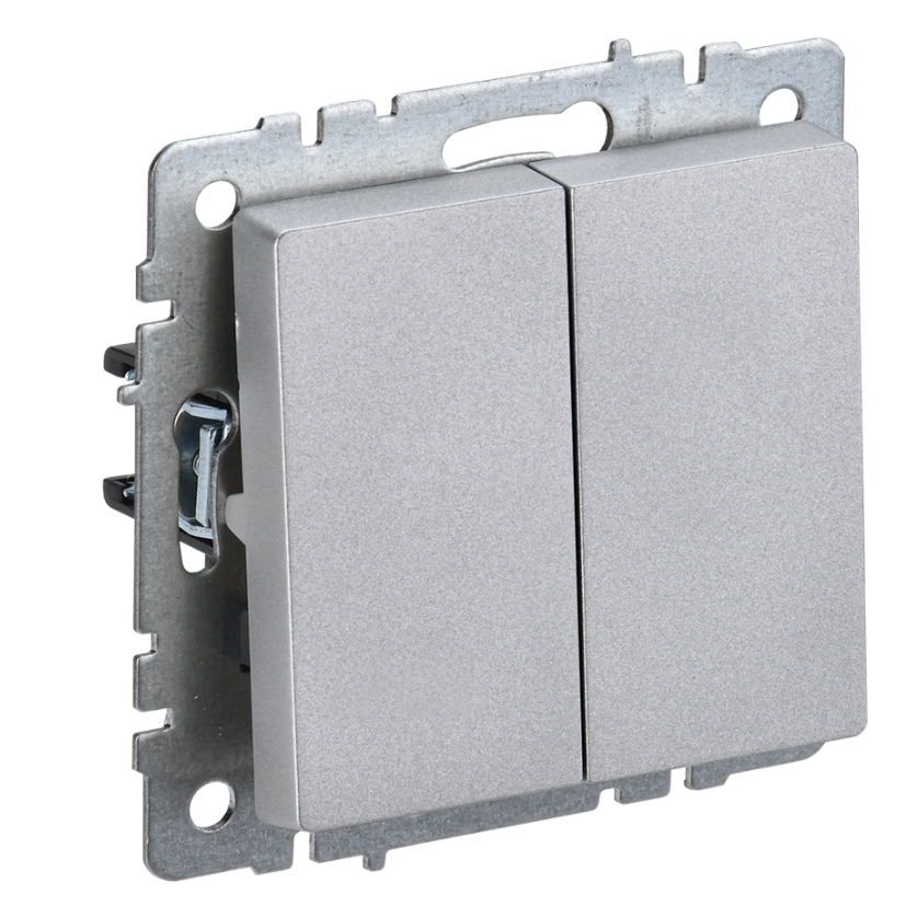 BRITE Выключатель 2-клавишный 10А ВС10-2-0-БрА алюминий IEK