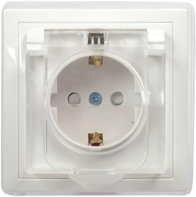 KVARTA Розетка с заземлением с защитными шторками с крышкой IP44 16А кер РСбш10-3-ККБ-44 белый GENERICA