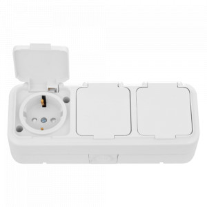 Розетка 3-местная открытой установки с заземляющим контактом, РА16-243