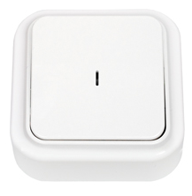 Выключатель 1-клавишный открытой установки (6 А) с подсветкой, серия ПРАЛЕСКА, А110-214