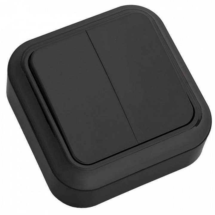 Выключатель 2-клавишный открытой установки (6 А), серия ПРАЛЕСКА, А56-134 черный