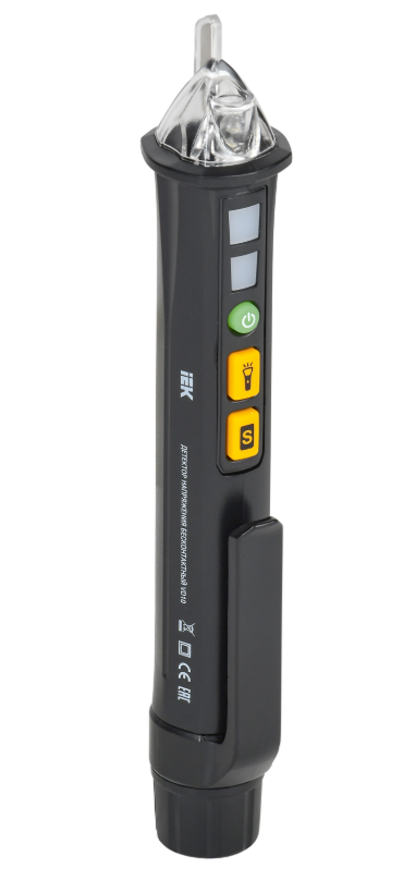 Детектор переменного напряжения с возможностью определения фазной и нулевой жилы, жидкокристаллическим дисплеем, световым и звуковым индикатором, встроенной светодиодной подсветкой зоны тестирования.