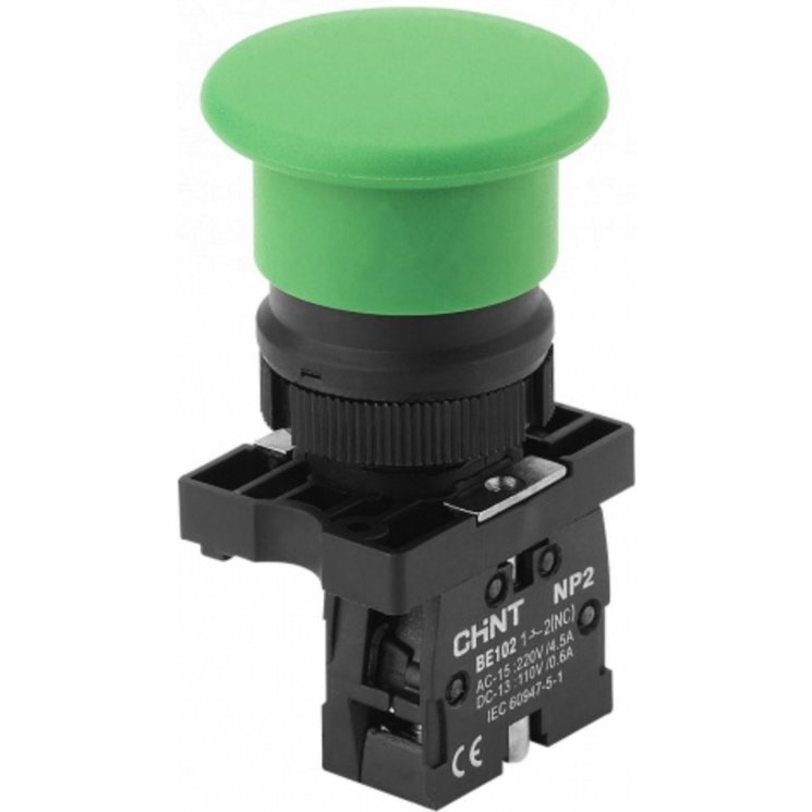 Кнопки управления NP - Кнопка управления "Грибок" Φ40мм с самовозвратом NP2-EC32 без подсветки зеленая 1НЗ IP40