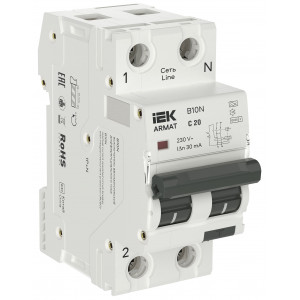Это Easy9 представляет собой модульный дифференциальный выключатель нагрузки с максимальной токовой защитой (АВДТ). Это автоматический выключатель 1P+N с номинальным током 10 А и кривой отключения C. Класс защиты от утечки на землю - тип АС с чувствительностью 30 мА. Временная задержка защиты от утечки на землю является мгновенной. Номинальная наибольшая отключающая способность Icn составляет до 4500 А. Это изделие обеспечивает защиту от короткого замыкания, перегрузки кабелей, поражения электрическим током при непрямом контакте и от опасности возгорания. На передней панели этого продукта имеется кнопка эксплуатационного испытания. Он также имеет индикацию аварийного срабатывания на передней панели в зависимости от положения ручки (выгравировано O-I). Данное изделие соответствует стандарту IEC 61009-1. Он обладает электрической износостойкостью, достигающей 4000 циклов, и механической износостойкостью, достигающей 10000 циклов. Рабочее напряжение Ue составляет 230 В переменного тока. Номинальное напряжение изоляции Ui составляет 400 В перем. тока. Номинальное импульсное выдерживаемое напряжение Uimp составляет 4 кВ. Частота 50/60 Гц. Монтаж осуществляется на DIN-рейку. Ширина составляет 2 шага по 9 мм. Размеры (Ш) 18 мм x (В) 93 мм x (Г) 69,5 мм. Вес - 136 г. Согласно стандарту IEC 60529, имеет степень защиты IP20 и IP40 при установке в щите. Температура эксплуатации от -25°C до 55°C. Температура хранения составляет от -40°C до 85°C.