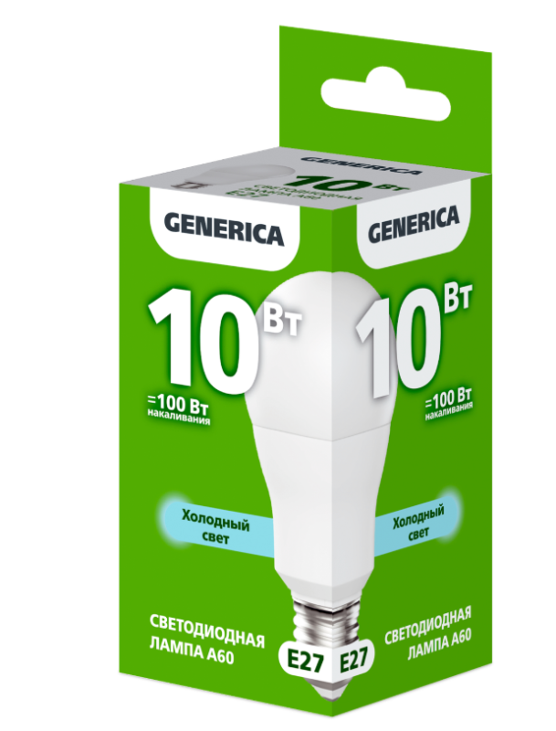 Лампа светодиодная A60 груша 10Вт 230В 6500К E27 GENERICA