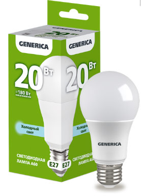 Лампа светодиодная A60 груша 20Вт 230В 6500К E27 GENERICA