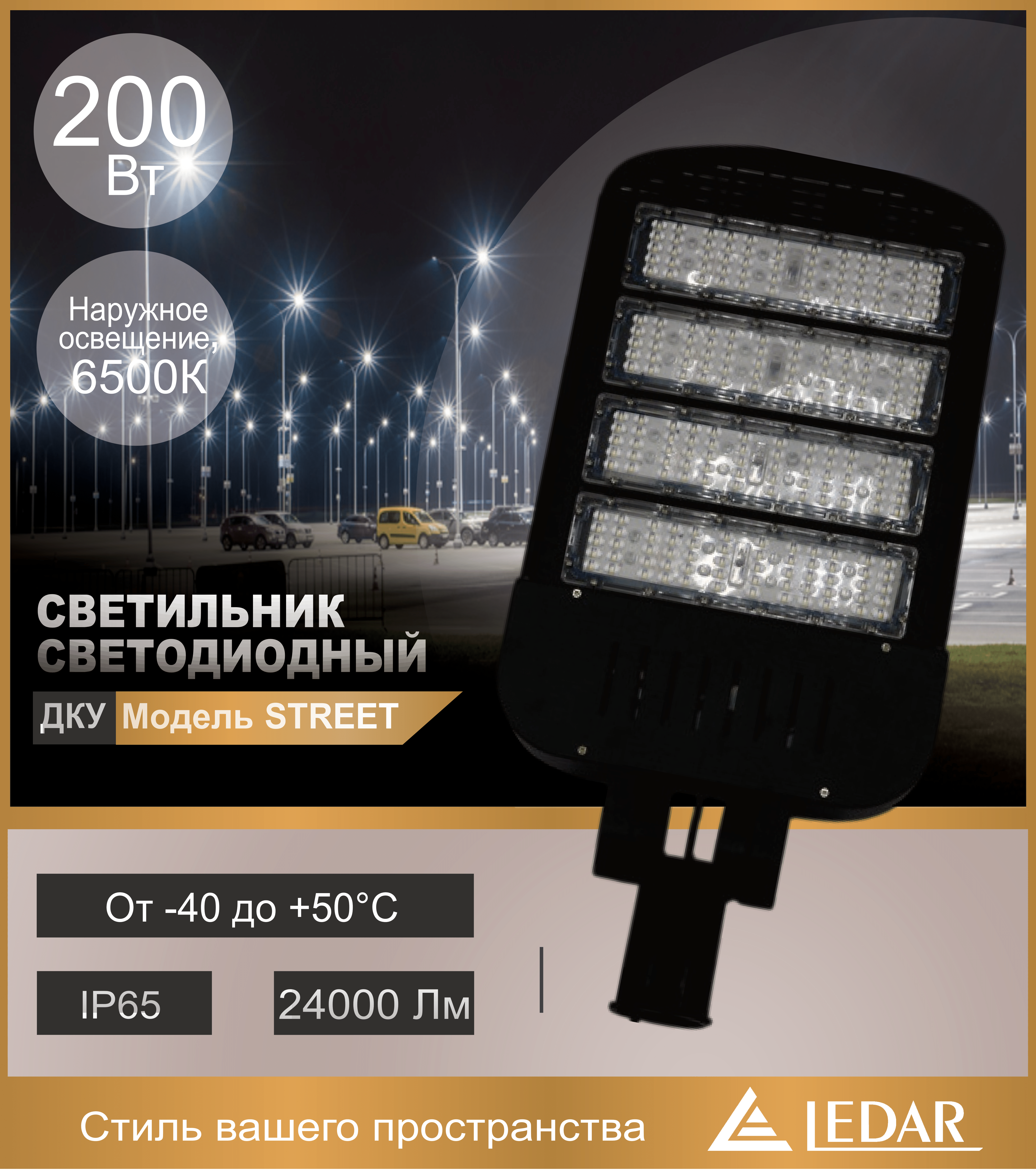 Светильник светодиодный ДКУ STREET 200W 6500К черный LEDAR