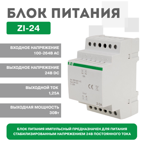 Блок питания ZI-24 (импульсный) предназначен для питания устройств стабилизированным напряжением постоянного тока.