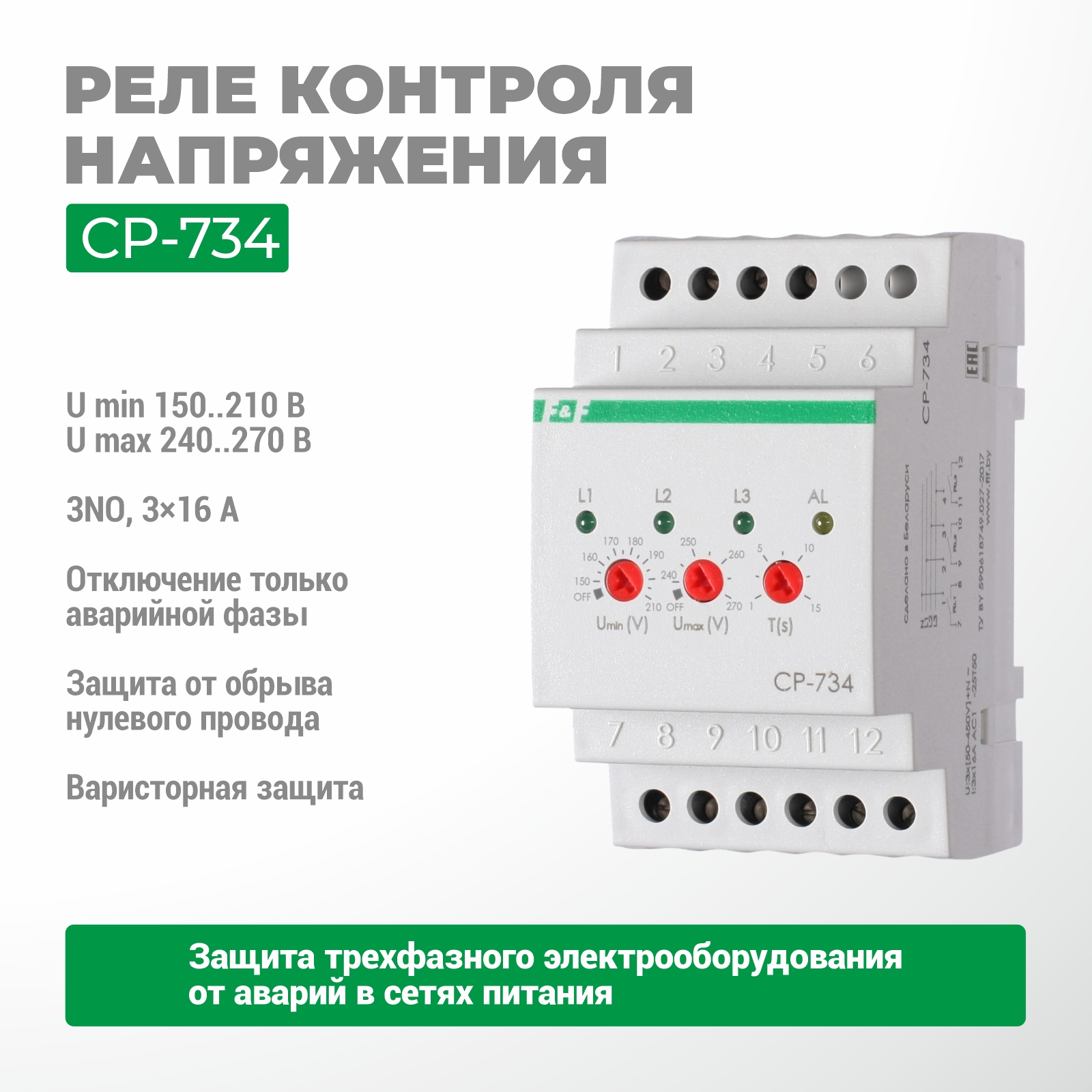 Нижний предел 150-210 В, Верхний предел 240-270 В, отдельный контакт на каждую фазу, контакт 3NO, 3х16 А.