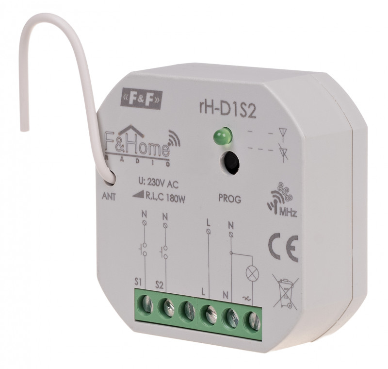 Диммер rH-D1S2 LR предназначен для управления освещением и в системах вентиляции двигателями постоянного и переменного тока с низким до 180 Вт энергопотреблением. Модуль rH-D1S2 LR управляет лампами всех типов с функцией диммирования. Модули версии LR отличаются увеличенной дальностью радиосвязи, которая составляет на открытом пространстве до 350 м. Дальность до 350 м достигается при работе в комплекте с серверами rH-SERVER LR и rH-SERVER DIN2.