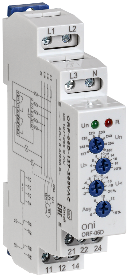 Реле фаз ORF-06D 3ф. 2 конт. 127-265В AC с контр. нейтр. ONI