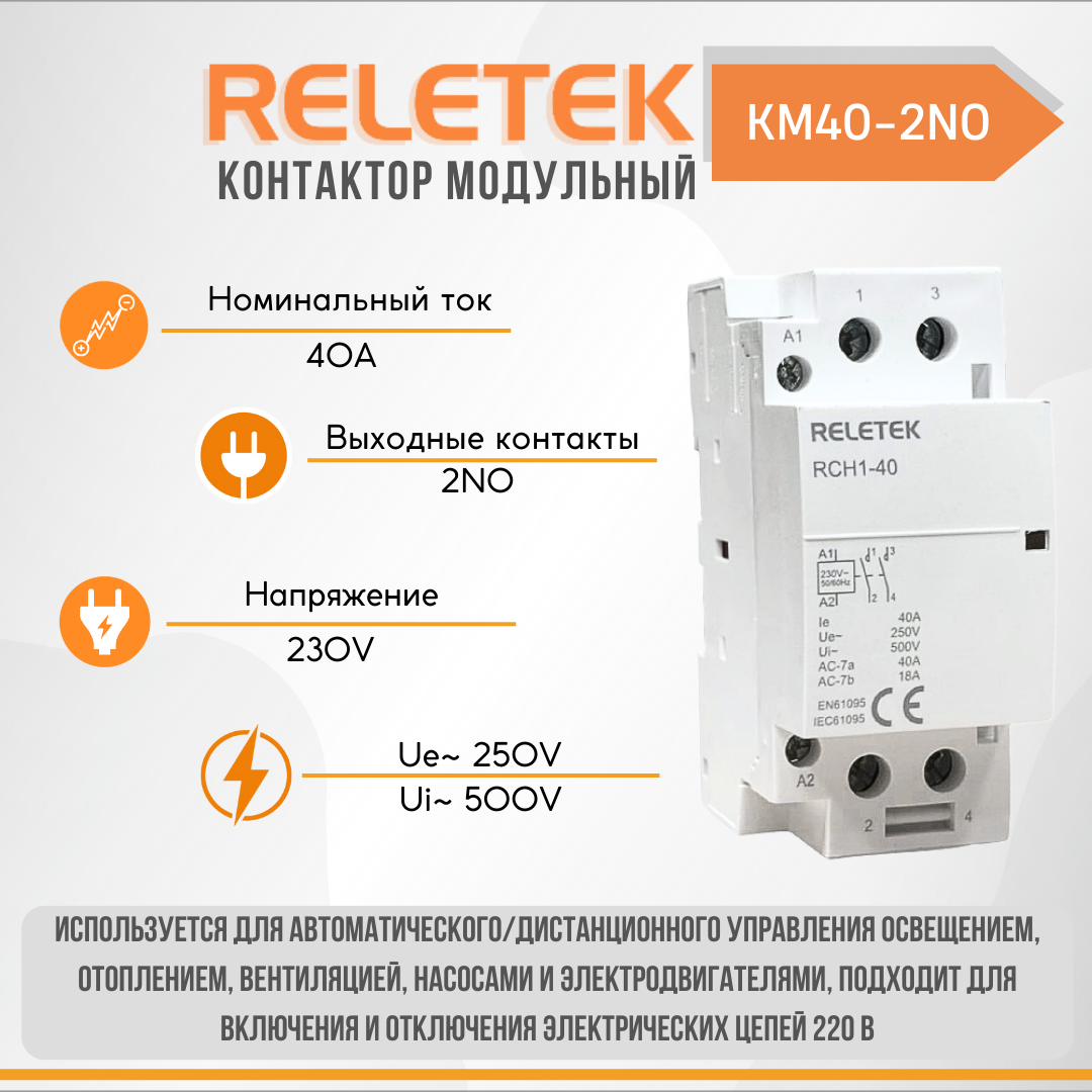 Контактор модульный КМ на 40А 2NO 230AC Reletek